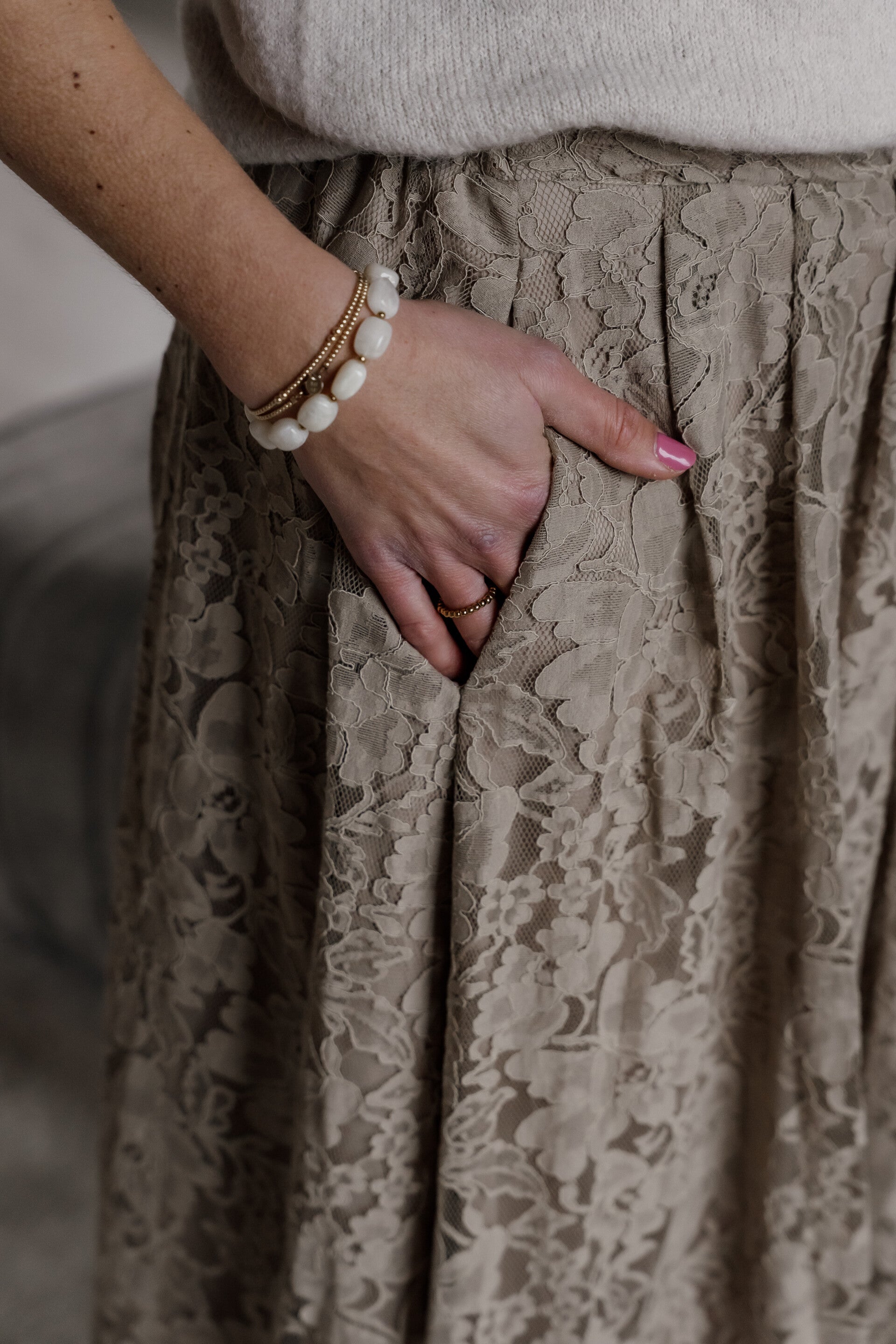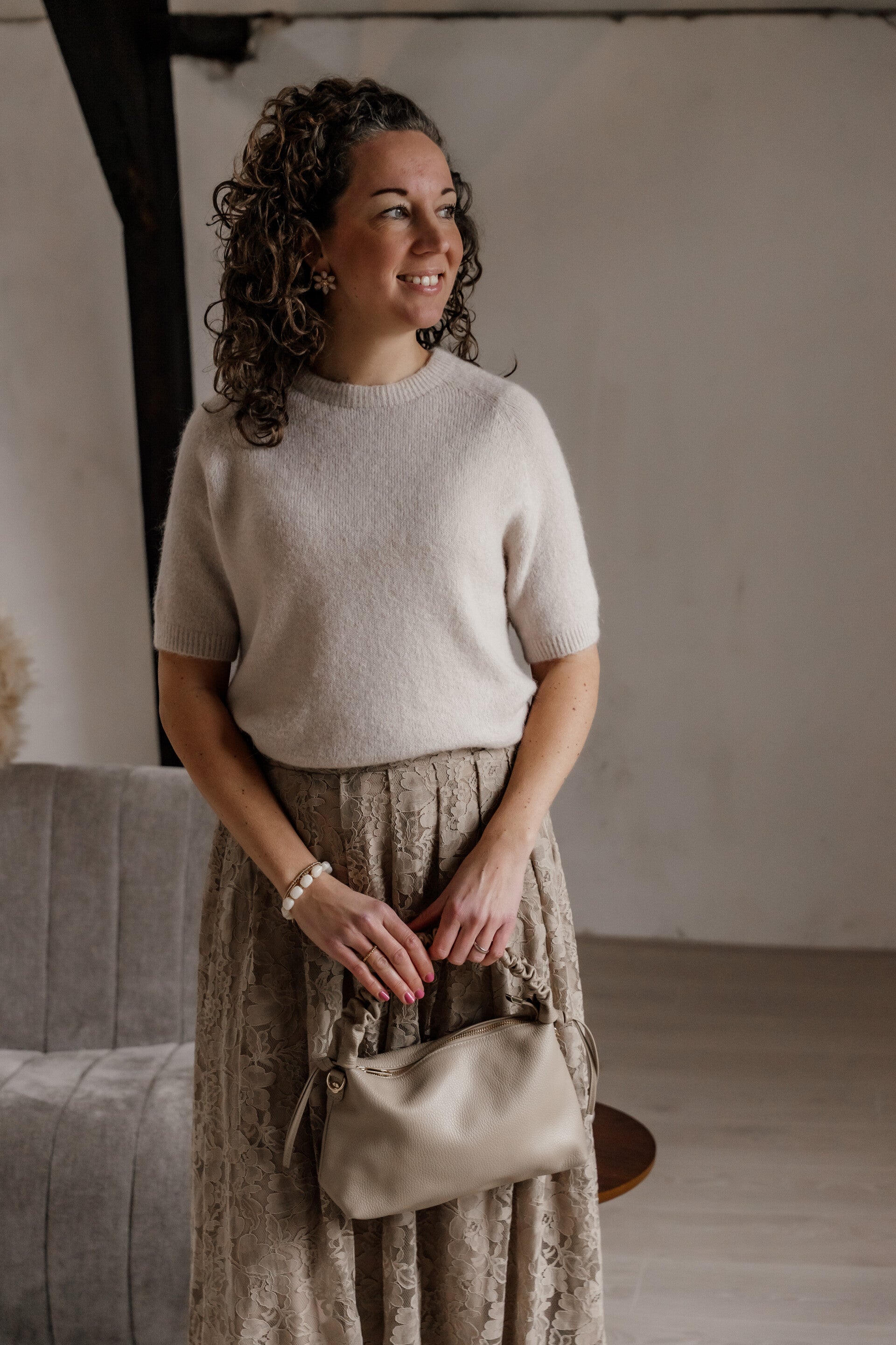 Een tijdloze musthave voor je garderobe die je prachtig combineert met de kanten rok in taupe kleur voor een vrouwelijke en stijlvolle look. Verkrijgbaar in meerdere kleuren.