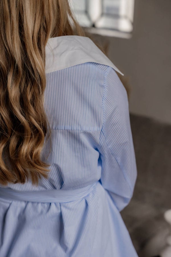 La Flor klassieke jurk streep - lichtblauw