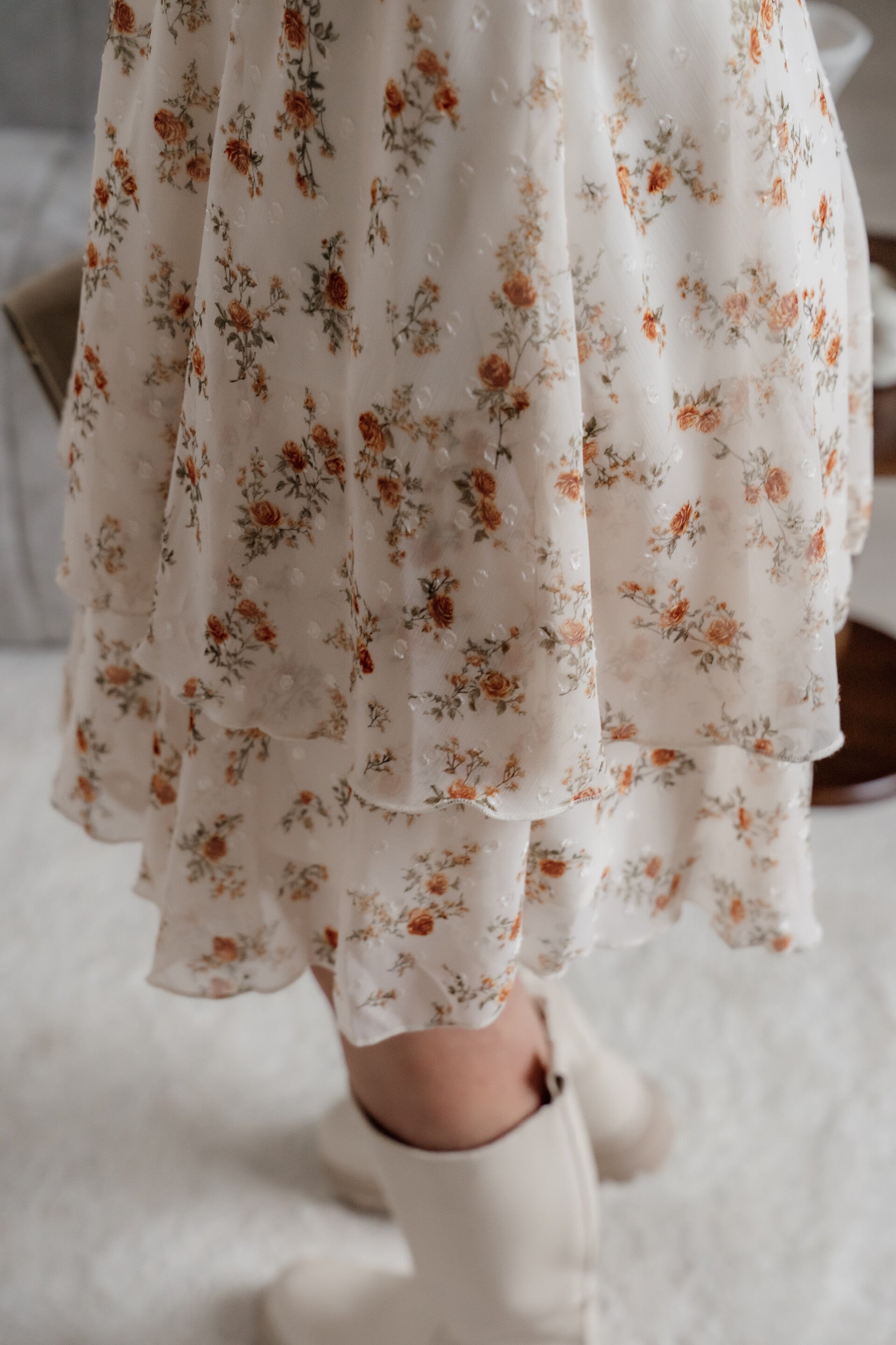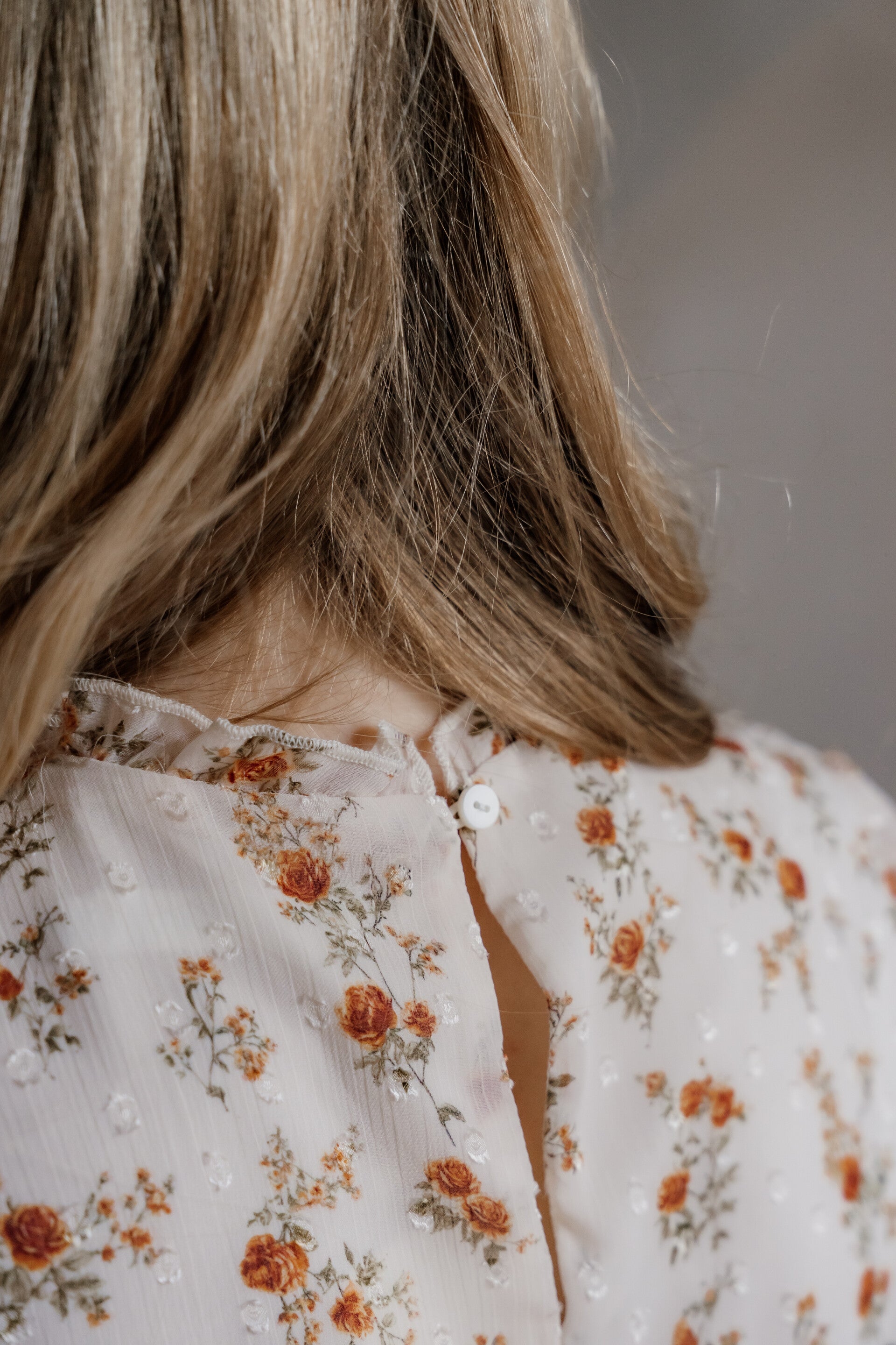 Deze luchtige jurk met fijne bloemenprint straalt vrouwelijkheid en zachtheid uit. De hoge hals, subtiele plooien en licht getailleerde taille zorgen voor een flatterende pasvorm, terwijl de lange mouwen met elastische manchetten een elegante touch geven. De soepelvallende stof en speelse rucherand aan de onderzijde maken de jurk perfect voor zowel een casual daglook als een feestelijke gelegenheid. Tijdloos, stijlvol en moeiteloos te combineren met laarzen of hakken.