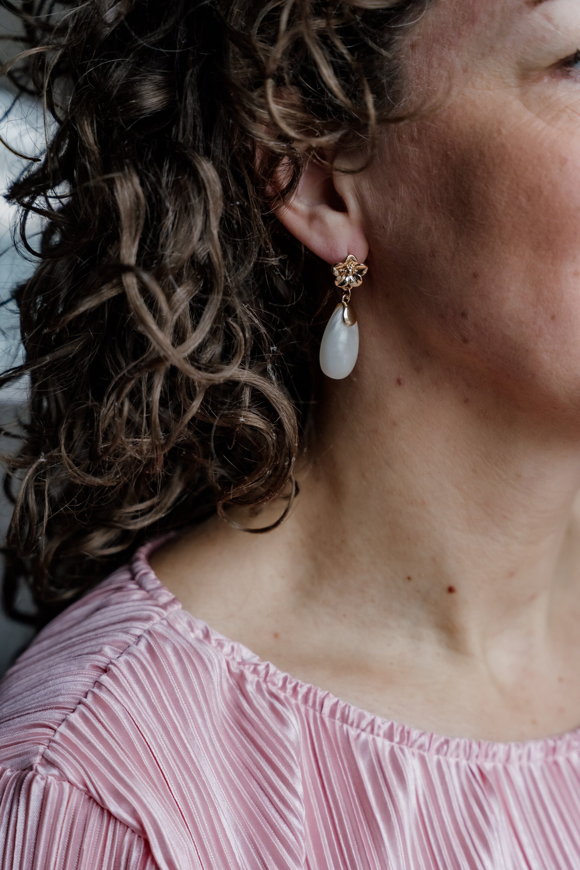 La Flor oorbellen parel bloem ovaal - wit