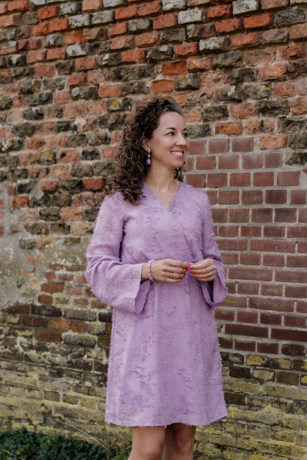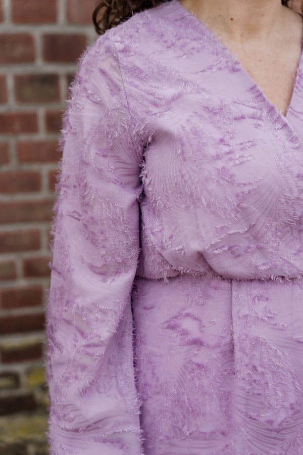Dit prachtige jurkje van Azzurro is een echte eyecatcher in een zachte lila kleur. Het jurkje is veelzijdig en perfect voor zowel een alledaagse look als een feestelijke gelegenheid.