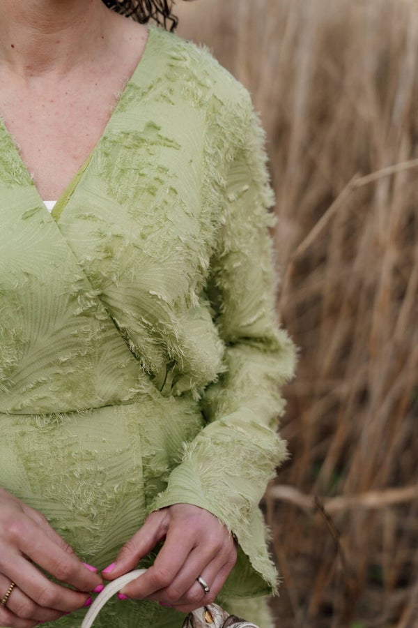 Dit prachtige jurkje van Azzurro is een echte eyecatcher in een zachte groene kleur. Het jurkje is veelzijdig en perfect voor zowel een alledaagse look als een feestelijke gelegenheid. Perfect te combineren met beige tinten.