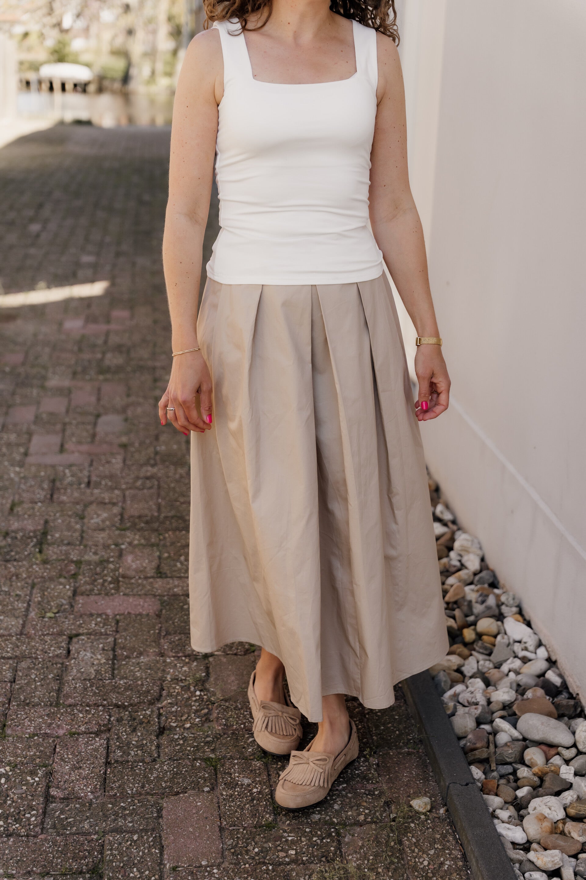 !! La Flor midi rok beige