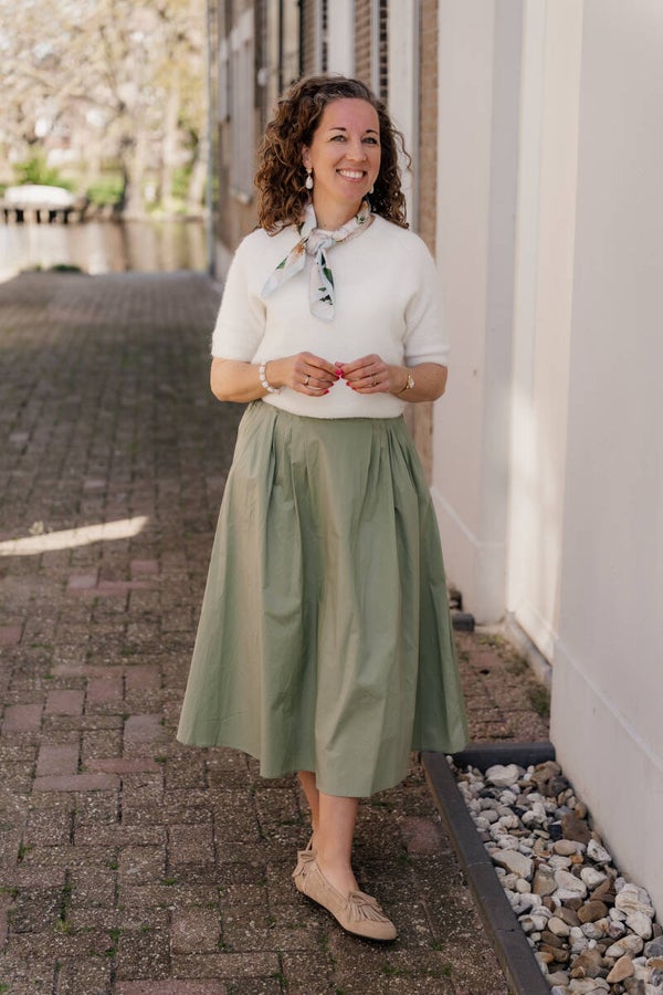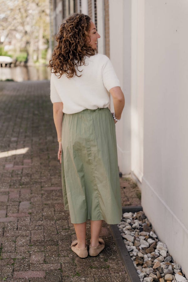 Luchtige midi rok met een vrouwelijke, soepel vallende fit. Perfect voor een zomerse en stijlvolle look, makkelijk te combineren met zowel tops als vestjes.