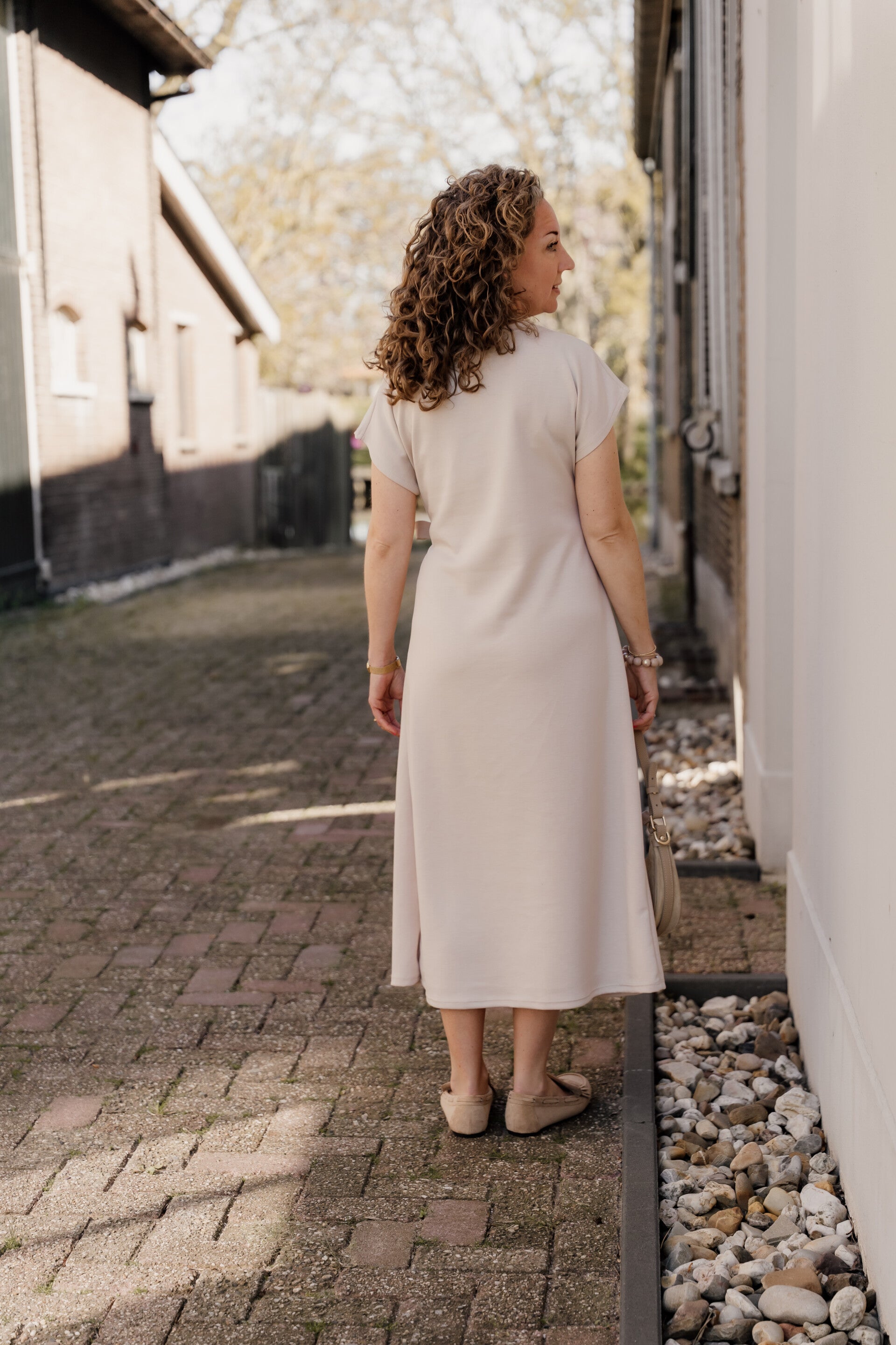 La Flor maxi jurk strik - beige