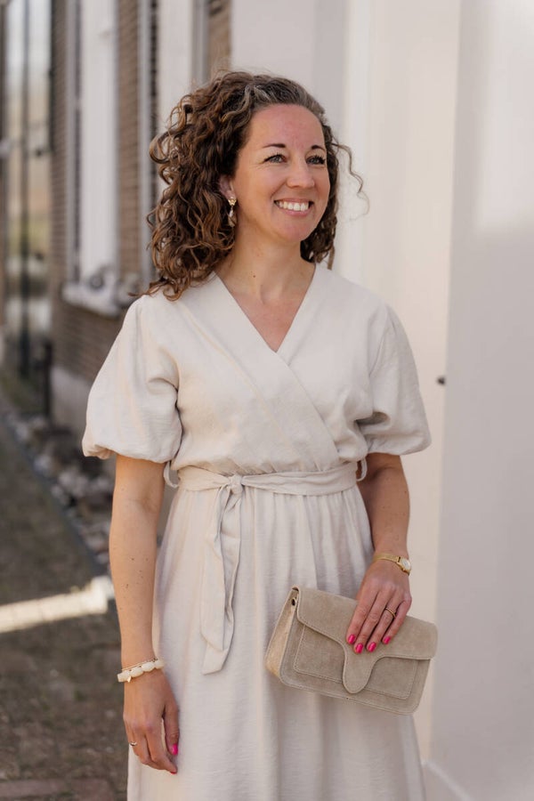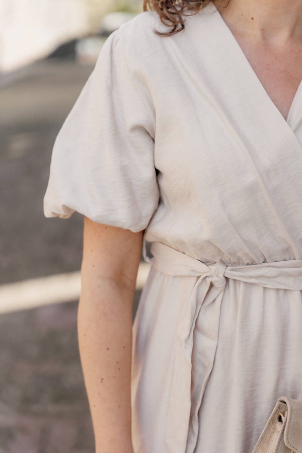 Lengte van de jurk is 109 cm.Valt op maat. Mariëlle is 1,68m en draagt maat S/M.Materiaal: 100% viscose